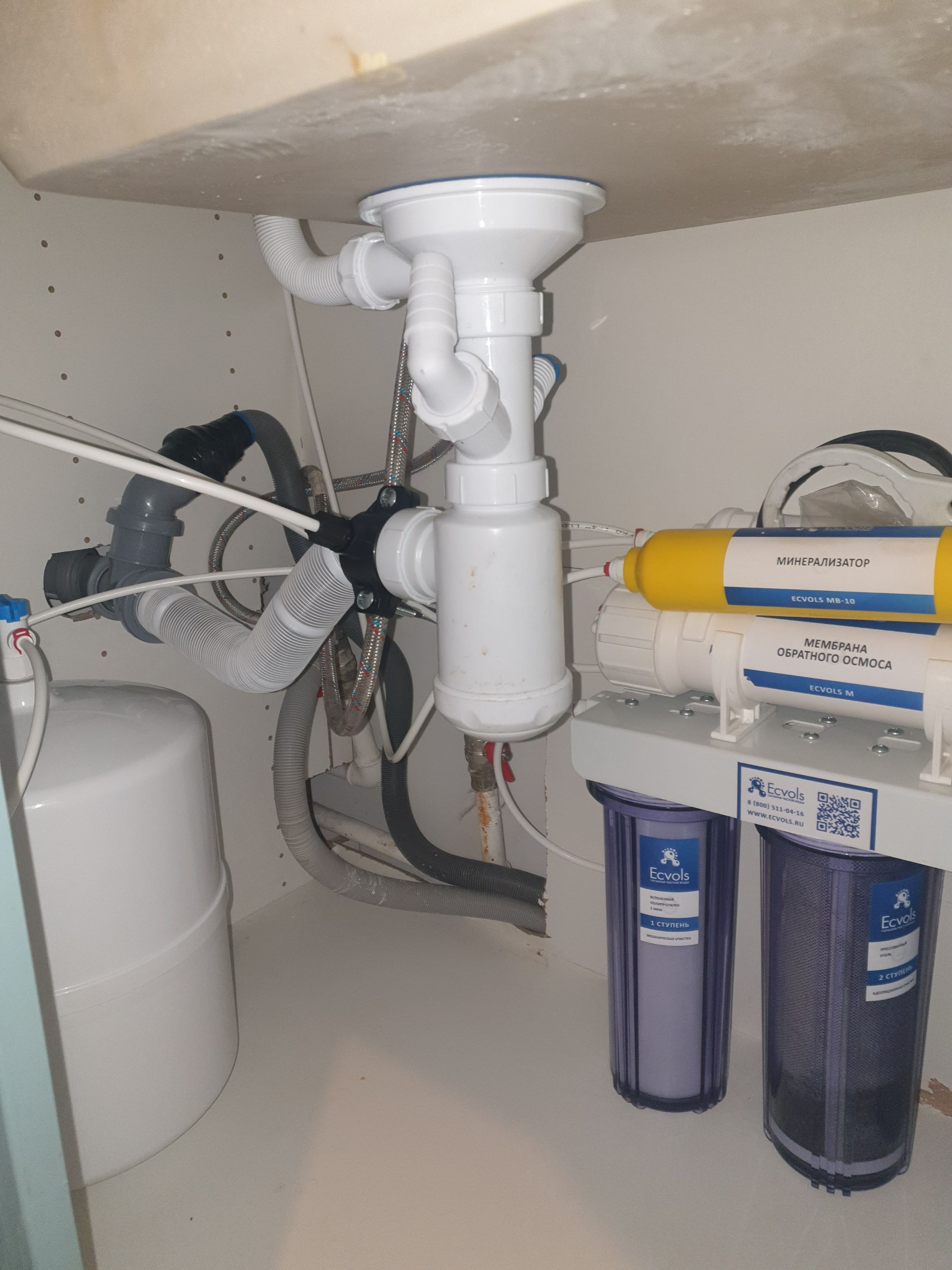 Установить компактный фильтр обратного осмоса для получения питьевой воды Ecvols RO-55M.