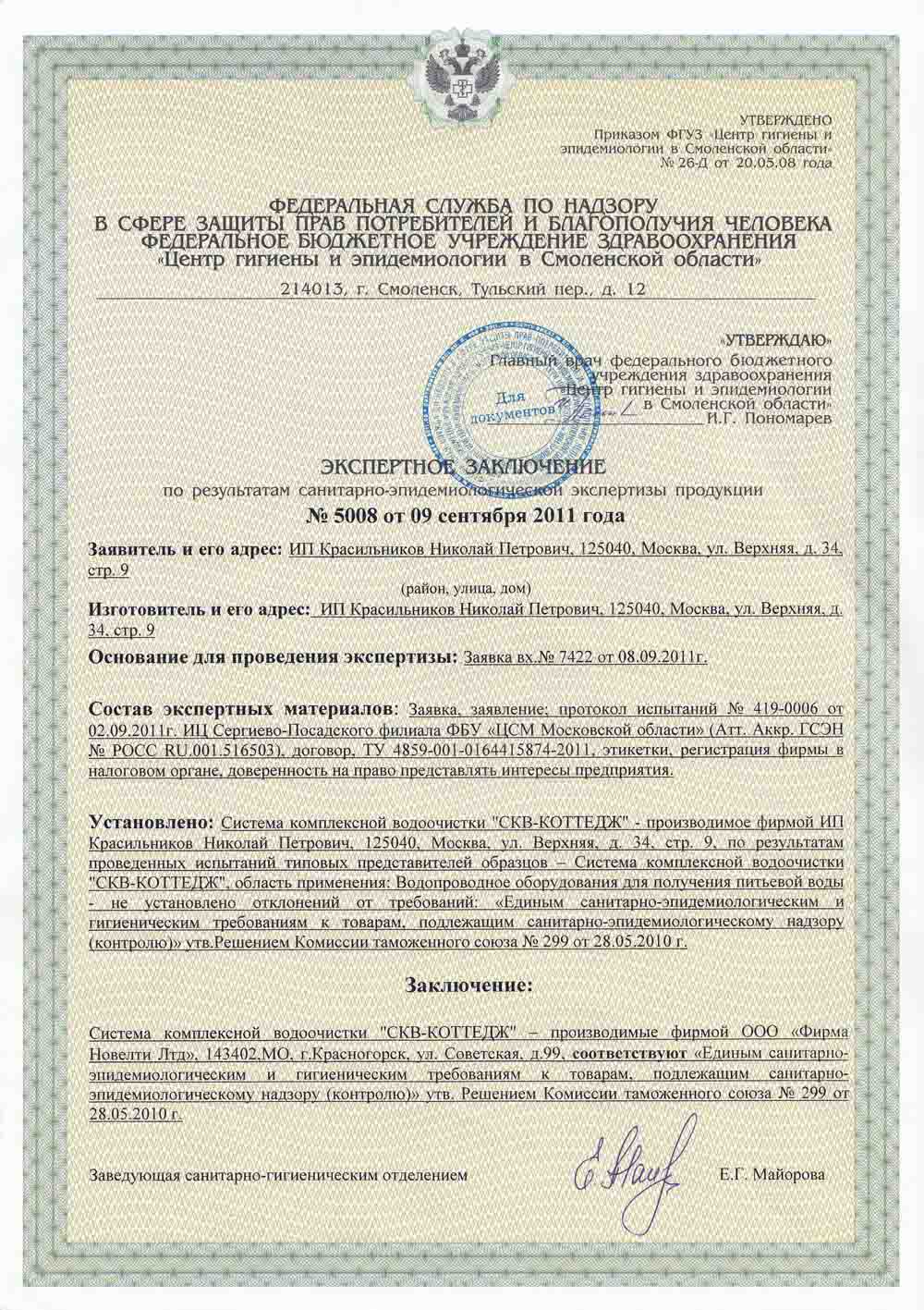 в области систем очистки воды и водоподготовки